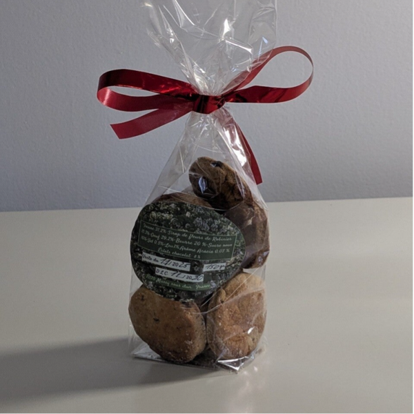 Farine 31.2%-Sirop de fleurs de Robinier 10.3%-Oeuf 29.2%-Beurre 20 %-Sucre roux 10%-Sel 0.5%-Lev.1%